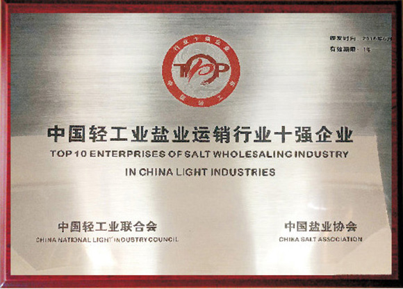 中國(guó)輕工業(yè)鹽業(yè)運(yùn)銷(xiāo)行業(yè)十強(qiáng)企業(yè)